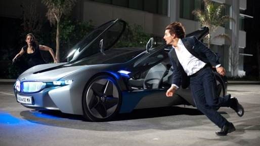 Estrela da BMW no Salão de Frankfurt de 2009, o protótipo híbrido Vision Efficient Dynamics fez sua estreia nos cinemas dois anos depois, em “Missão: Impossível – Protocolo Fantasma”. No filme, Cruise usa o esportivo de formas futuristas para investigar uma organização terrorista. O veículo conta com um motor turbodiesel de três cilindros e 1.5 litro para girar as rodas traseiras. Um gerador elétrico em cada eixo aciona a tração integral. O conjunto atinge 356 cv de potência e brutos 800 Nm de torque. O modelo-conceito foi utilizado como base para o lançamento, em 2013, do revolucionário híbrido BMW i8.