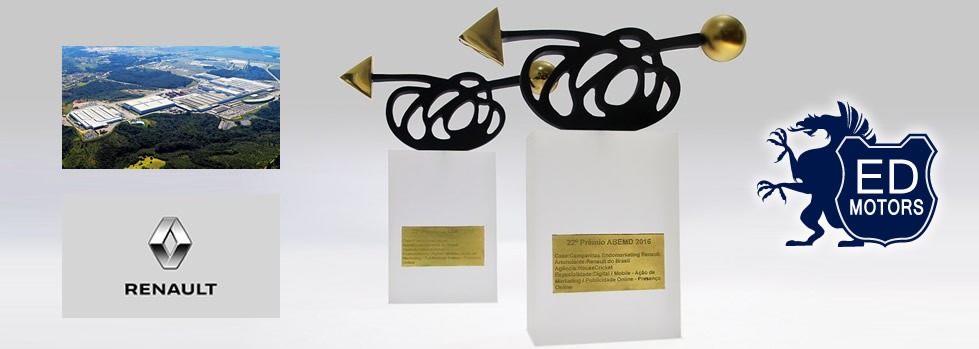 A Renault do Brasil foi vencedora de dois troféus ouro e um prata na entrega do Prêmio Abemd 2016, promovido pela Associação Brasileira de Marketing Direto. Os vencedores foram conhecidos em cerimônia realizada na noite desta terça-feira (07), em São Paulo. Os cases ganhadores da categoria ouro, desenvolvidos em parceria com a agência HouseCricket, foram o portal “Sou Renault” e as ações de endomarketing realizadas nesta plataforma digital. Já o case “¬Novo Renault Duster Oroch: inaugurando um novo segmento no mercado de automóveis”, elaborado com a Marketdata, conquistou o troféu Prata.
