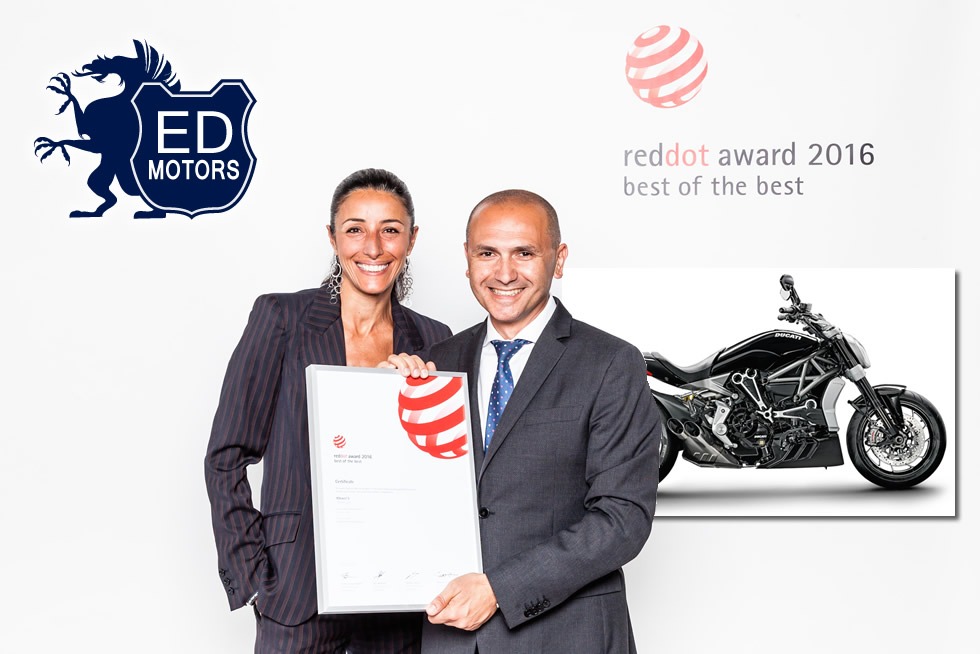 Um dos maiores prêmios do design mundial, o Red Dot Award 2016, escolheu a Ducati XDiavel S para receber o Red Dot, o selo de qualidade em design reconhecido internacionalmente. A XDiavel S foi premiada com o título de “Best of the Best”.