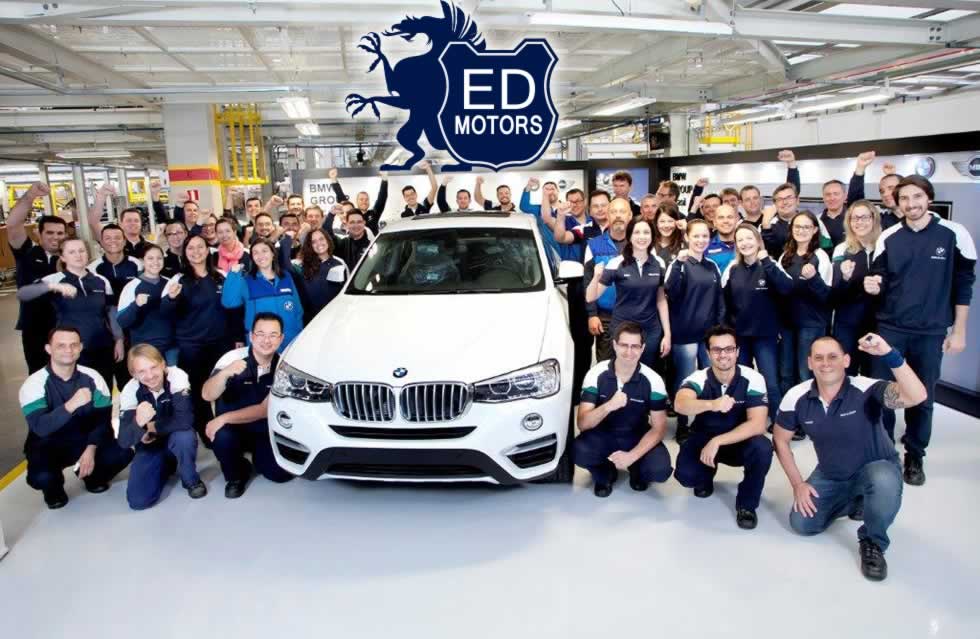 Colaboradores da fábrica do BMW Group em Araquari (SC) comemoram o início da produção do BMW X4, ao lado do primeiro modelo produzido no Brasil, de cor branco alpino. O projeto teve início nesta quarta-feira (31), quase 2 anos após o primeiro modelo BMW (um 328i ActiveFlex) ter saído da linha de produção da unidade fabril catarinense, em 30 de setembro de 2014. Assim como o BMW X4, são produzidos no local os modelos BMW Série 1 e Série 3, BMW X1 e BMW X3, assim como o MINI Countryman.