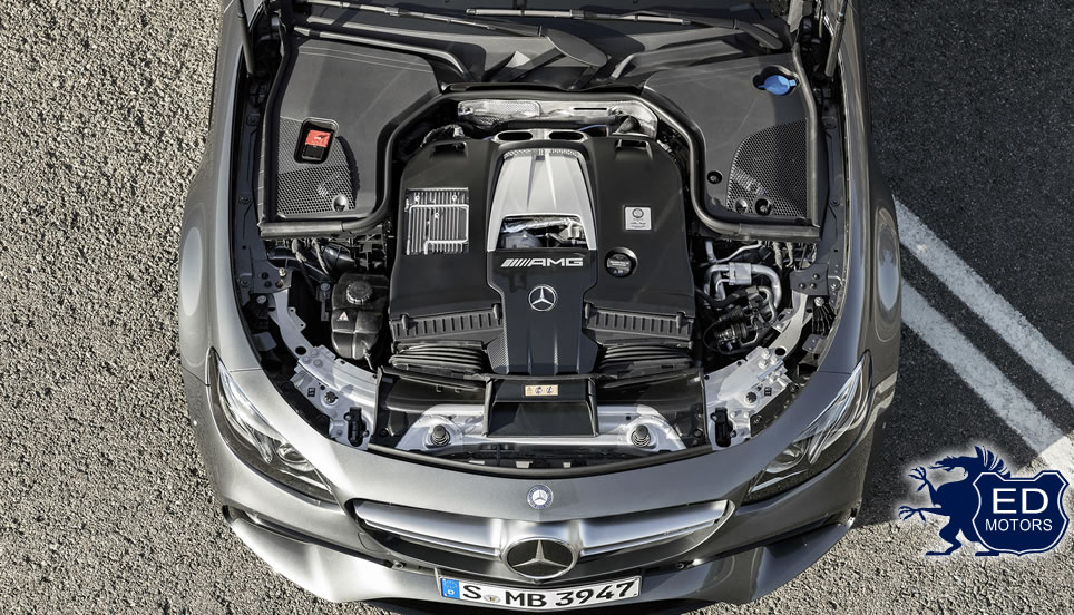 O avançado motor V8 AMG utiliza a alimentação com dois compressores que não se localizam fora das bancadas de cilindros, mas entre elas no V interno do motor. O benefício dessa configuração é um design mais compacto do motor, ótima resposta dos turbos e menos emissões do escapamento, graças ao fluxo de ar otimizado na direção dos conversores catalíticos montados junto ao motor.