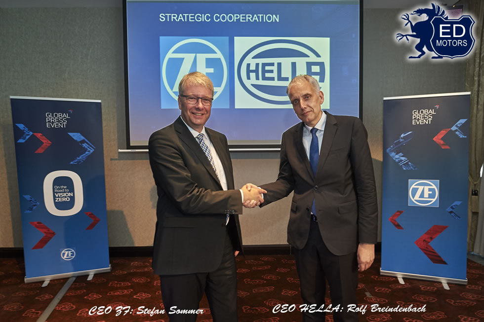ZF e HELLA estão celebrando uma parceria estratégica. Ambos os fornecedores automotivos se beneficiarão desta cooperação em tecnologia de sensor, especialmente para sistemas de câmera dianteira, imagem e sistemas de radar. A ZF fortalecerá seu portfólio como fornecedora de sistemas de assistência modernos e funções de direção autônoma, enquanto a HELLA impulsionará o desenvolvimento tecnológico e benefícios de um amplo acesso ao mercado com suas tecnologias de ponta. O primeiro projeto de desenvolvimento conjunto em tecnologia de câmeras será iniciado imediatamente, com objetivo de lançamento no mercado em 2020.