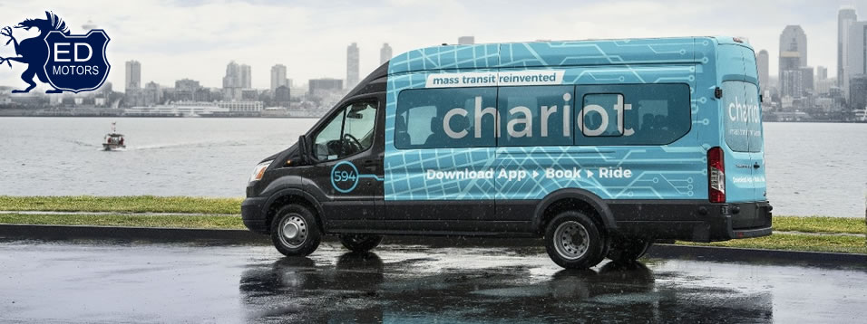 A Chariot foi fundada em 2014, em São Francisco, na Califórnia, e adquirida pela Ford em 2016. Ela opera com vans Ford Transit de 15 lugares, que circulam na cidade com rotas definidas a partir da demanda dos passageiros, usando um aplicativo e algoritmos para mapear os caminhos mais eficientes. Seu objetivo é complementar o transporte de massa e preencher as lacunas dos serviços de táxi e ônibus como opção de transporte ponto a ponto.
