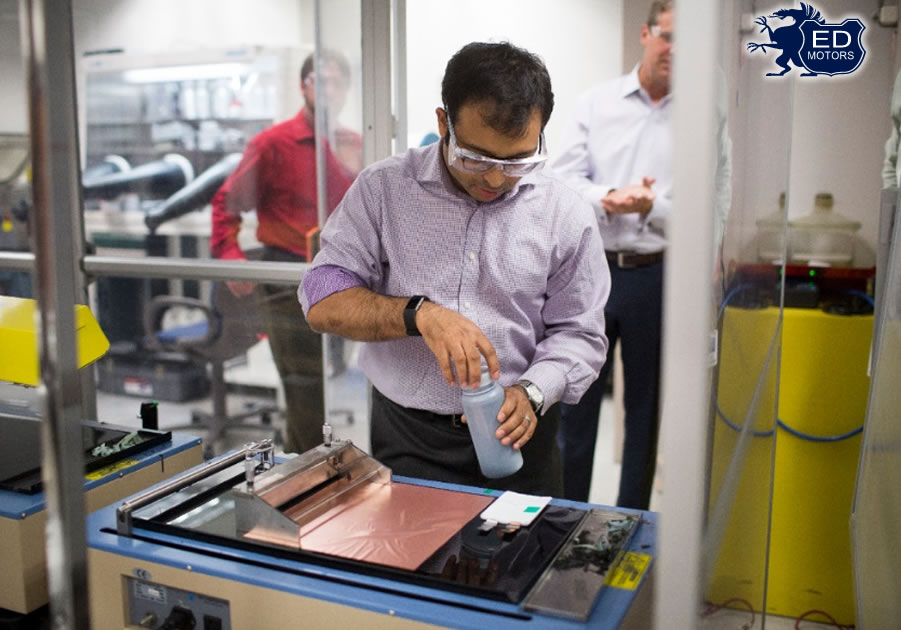 Colocar um novo projeto de bateria em produção geralmente é trabalho de uma década. A reunião de especialistas de diferentes áreas é uma das estratégias da Ford para avançar nesse desenvolvimento. Mohan Karulkar, especialista em engenharia química, Brian Robert, engenheiro de eletrônica de motores, e o físico Andy Drews são um exemplo desse time de inovação que busca oportunidades combinando várias áreas de conhecimento.