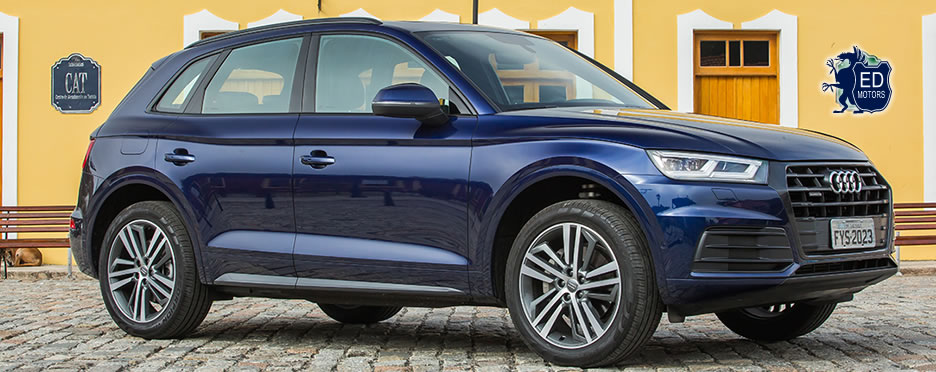 O novo SUV da Audi leva para as ruas um perfil mais esportivo. A ampla grade Singleframe com sólida moldura domina a dianteira aerodinamicamente plana. O modelo está disponível com faróis Full LED com luzes de setas dinâmicas.
