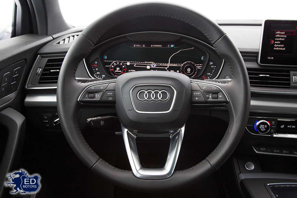 O novo Q5 combina com precisão características muito diferentes – é esportivo e ao mesmo tempo extremamente confortável. As bases para isso são a recém-desenvolvida suspensão de cinco links e a nova direção eletromecânica. Seis modos de condução podem ser selecionados pelo motorista por meio do sistema Audi drive select: off-road, comfort, efficiency, dynamics, auto e individual.