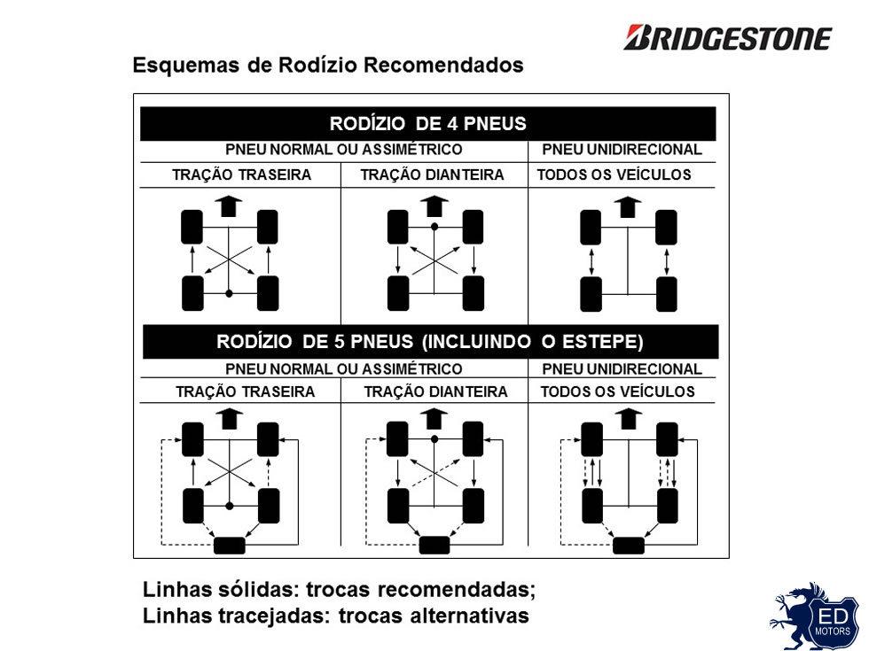 Os esquemas a seguir indicam os rodízios recomendados de acordo com cada caso: