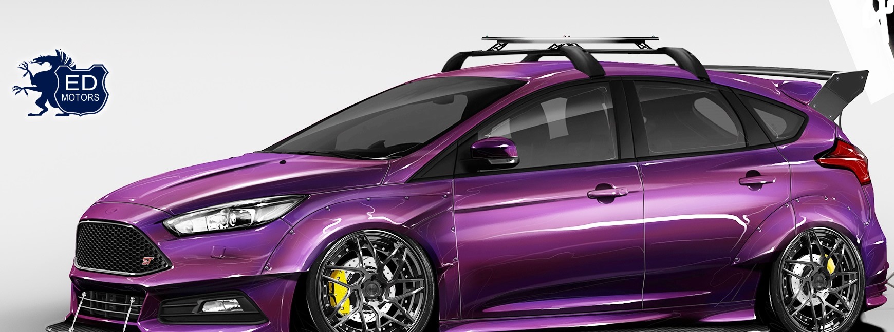 O conceito do Focus ST foi criado pela Blood Type Racing e chama a atenção pela cor púrpura Midnight Purple, alargadores dos paralamas, grande asa traseira e um exclusivo heliponto de drones no teto. Além de motor 2.0 EcoBoost com turbo de competição, tem escapamento, câmbio encurtado e soleiras das portas iluminadas da Ford Performance.