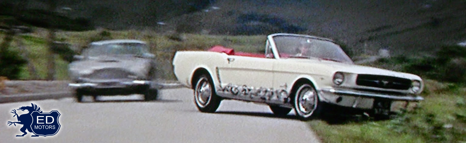 O Mustang estreou cedo nas telas e nunca mais saiu de cena. Apenas oito meses depois do seu lançamento, na Feira Mundial de Nova York de 1964, um modelo conversível branco foi usado pela bela assassina que perseguiu James Bond em “Goldfinger”. A perigosa estrada de Furkapass, nos Alpes Suíços, serviu como cenário para as cenas de perseguição. Uma das passagens de maior impacto é o momento em que o agente destrói os pneus do Mustang conversível de Tilly Masterson.