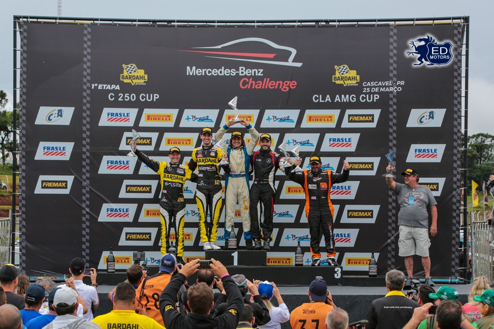 Raijan Mascarello e Peter Michel Gottschalk foram os vencedores da etapa de abertura do Mercedes-Benz Challenge 2018 em Cascavel. Na manhã chuvosa deste domingo (25/03), Raijan fez uma excelente corrida de recuperação para receber a bandeira quadriculada no autódromo Zilmar Beux. O piloto da CLA #15 havia conquistado a pole position no sábado, mas foi punido por uma irregularidade técnica e largou em 12o. Logo na segunda volta já estava na quinta posição. Após a parada obrigatória no box, saiu pressionando os adversários e ultrapassou o até então líder Luiz Carlos Ribeiro na penúltima volta. Já na C250 Gottschalk travou boa disputa com Alexandre Navarro nos minutos finais para garantir a vitória.