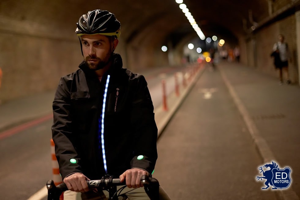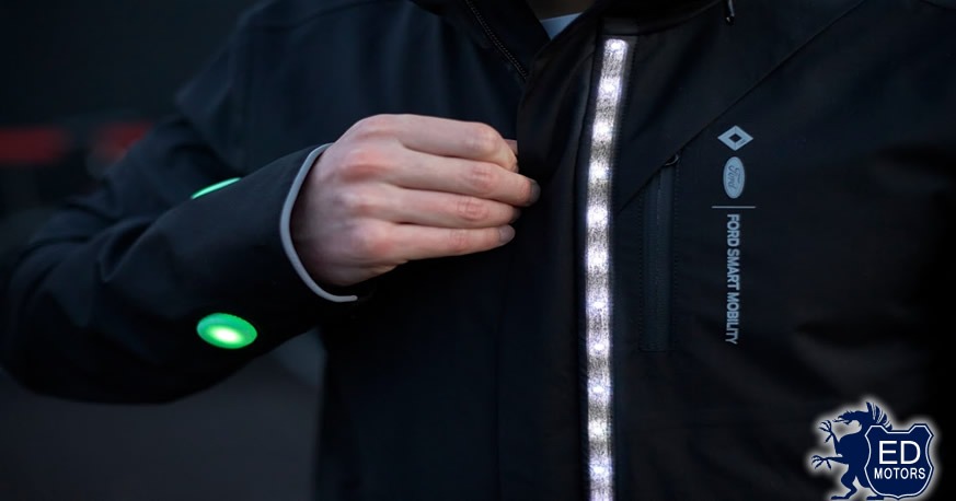 A jaqueta inteligente da Ford tem luzes de LED nas mangas que se acendem automaticamente quando o ciclista levanta o braço para avisar que vai virar à direita ou à esquerda, além de luz de freio. Conta também com um aplicativo de navegação, conectado sem fio a um smartphone, que gera uma vibração na manga correspondente para indicar a direção a seguir, selecionando rotas que evitam ruas movimentadas e cruzamentos.