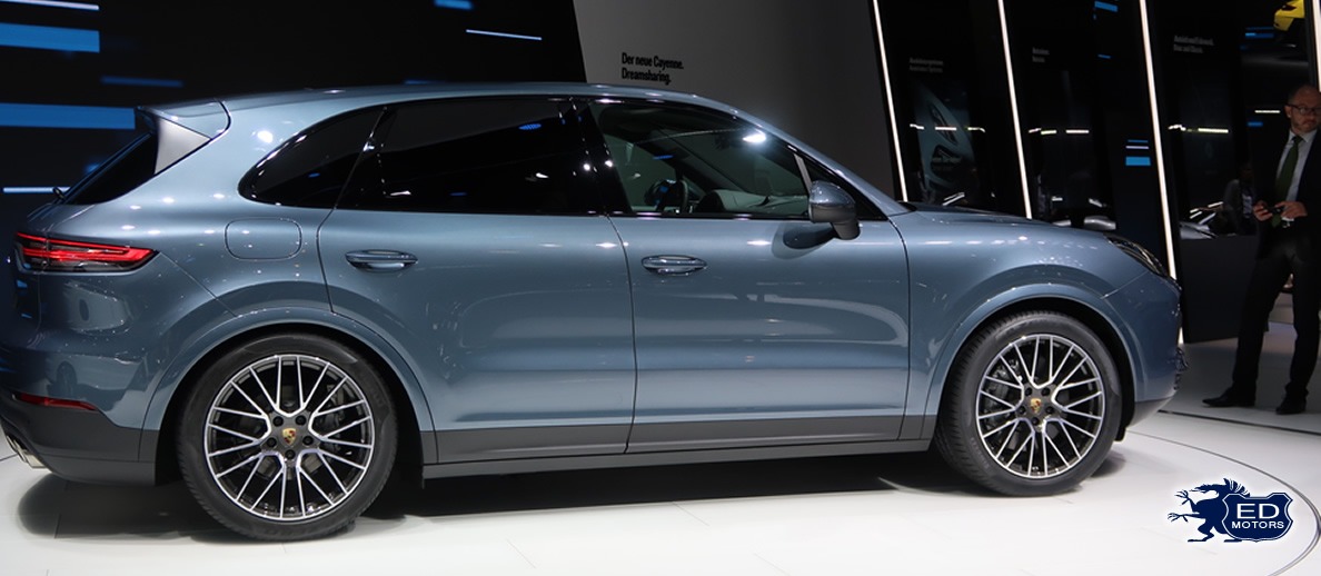 A versão inicial do Cayenne conta com rodas de 20 polegada em sua configuração padrão para o mercado Brasileiro. Entre as lanternas traseiras, o Cayenne possui um novo design tridimensional das luzes, e a faixa luminosa contínua de LED estende-se à inscrição Porsche marcante. Nos faróis, um novo conceito de iluminação em três níveis: cada Cayenne é equipado de série com faróis de LED. Além destes, no nível seguinte de expansão é disponibilizado para escolha o Porsche Dynamic Light System (PDLS), que possui diferentes modos de iluminação, tais como luz de curva e luz para autoestrada. O sistema mais sofisticado é o novo farol principal de LED Matrix com PDLS Plus. 84 diodos luminosos, controláveis individualmente e que possibilitam distribuição e intensidade totalmente variáveis da luz.