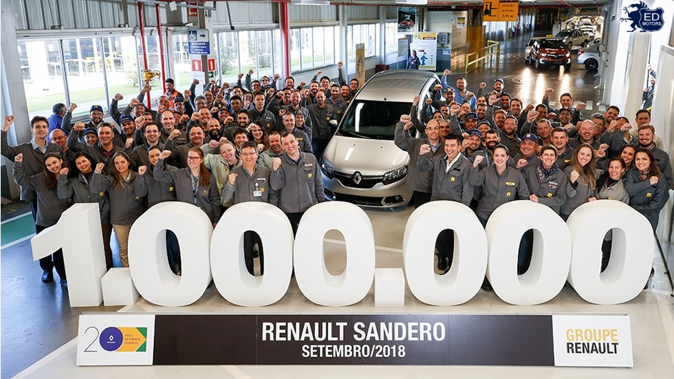 Primeiro lançamento mundial da Renault realizado no Brasil e veículo mais vendido da marca no país, o Sandero acaba de atingir a marca de 1 milhão de unidades produzidas no Complexo Ayrton Senna, no Paraná. Atualmente, o veículo é comercializado nas versões Authentique, Expression e GT Line, além do aventureiro Stepway e do esportivo R.S. 2.0. Mais de dez anos após seu lançamento, o carro continua um grande sucesso no mercado nacional com o melhor espaço interno entre os automóveis compactos. O Sandero está entre os veículos mais vendidos do pais.
