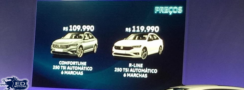 O Novo Jetta, apresentado ontem(20/09), é oferecido em seis opções de cor: três sólidas (Branco Puro, Preto Ninja e Vermelho Tornado), duas metálicas (Prata Snow e Cinza Platinum) e uma perolizada (Preto Mystic). O modelo conta com três anos de garantia de fábrica, sem limite de quilometragem, e tem as três primeiras revisões gratuitas.