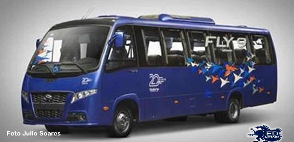 Externamente, o novo Fly 9 ganhou novo para-choque e grade dianteira, faróis de neblina em LED e espelhos pintados na cor do veículo. Também a logomarca foi reestilizada, como novo lettering, e posicionada no centro da tampa dianteira. A grade em cor cinza titânio destaca o logo e proporciona estilo agressivo e inédito no segmento de ônibus. Na traseira, novos conjunto ótico, tampa do porta-malas, vigia com desenho mais harmonioso, para-choque, porta-placa e delimitadores. O resultado é a consolidação do estilo inconfundível da marca.