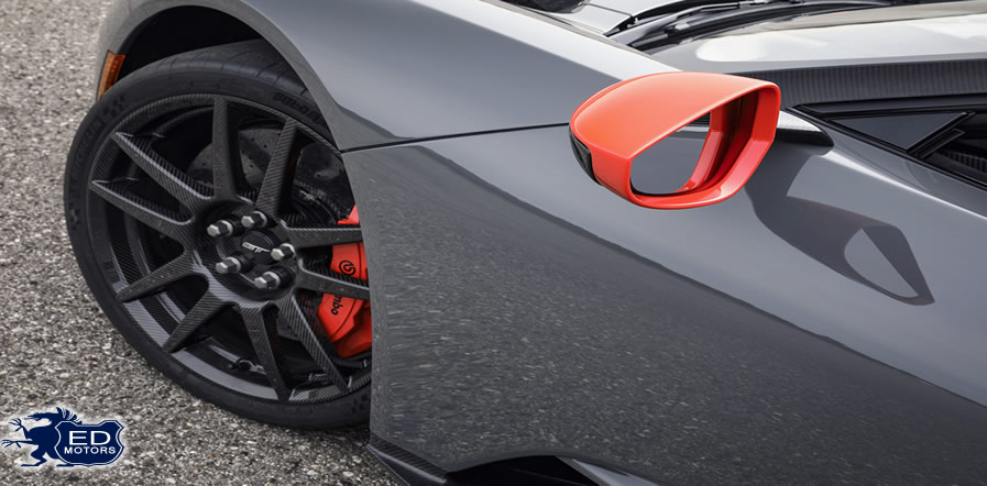 Visualmente, a terceira edição especial do Ford GT se destaca pelos itens de fibra de carbono aparente nas duas faixas centrais, nos pilares A, nos painéis inferiores e rodas. As capas dos retrovisores, a faixa central e as pinças de freio podem vir em quatro cores contrastantes – prata, laranja, vermelho ou azul –, à escolha do cliente.