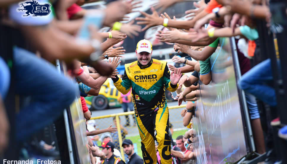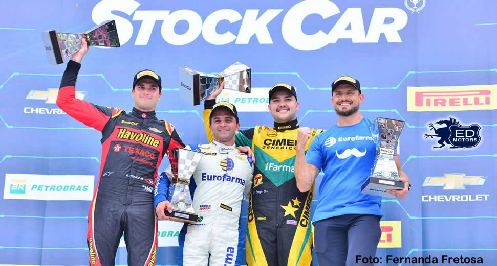 Quem também pode se considerar um vencedor na etapa é Felipe Fraga. O piloto da Cimed Chevrolet Racing foi ao pódio nas duas provas, com dois terceiros lugares, e diminuiu de 34 para 25 pontos a diferença que o separa do líder Daniel Serra, que foi quarto e sexto no Autódromo Internacional de Goiânia. A etapa final, em Interlagos, será disputada em uma única corrida que valerá o dobro de pontos, restando ainda 60 em jogo. A matemática agora coloca 297 a 272 para o piloto da Eurofarma RC, e a dupla é a única com chances de conquistar o título da temporada.