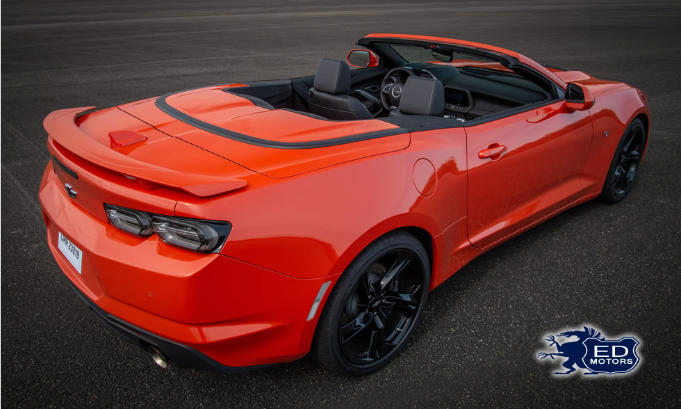 O Camaro 2019 caracteriza-se pelo design mais imponente e esportivo. Na dianteira, essa percepção dá-se pelos novos faróis em Full LED, além do capô, grade e para-choque remodelados. Tudo isto agrega uma personalidade marcante ao veículo e antecipa a linguagem estética de futuros modelos da Chevrolet.