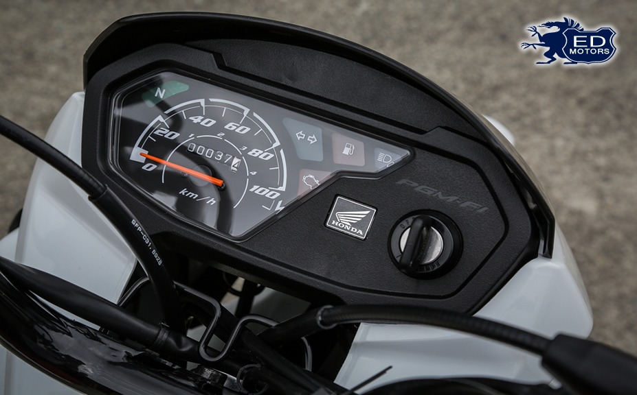 Destaque também merece o painel: integrado à carenagem do farol, concilia fácil e imediata consulta às informações básicas como luzes indicadoras, reserva de combustível, farol alto, piscas e o sistema de injeção PGM-FI, além de estar devidamente protegido de colisões.