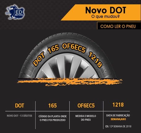 “Conhecer o DOT é como ter acesso à carteira de identidade de um pneu“, explica Rafael Astolfi, gerente de assistência técnica da Continental, maior fabricante de pneus da Alemanha e integrante de um dos maiores grupos sistemistas do mundo, acrescentando que o dígito adicional foi agregado ao primeiro bloco de números, que informa a fábrica na qual o pneu foi produzido.