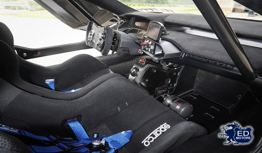 O poder de parada também foi reforçado, com discos de freio Brembo de carbono-cerâmica de 15,5 polegadas na dianteira e 14,1 polegadas na traseira. As rodas são de alumínio forjado de 19 polegadas. No interior, as mudanças incluem banco especial de corrida Sparco com cinto de segurança de seis pontos, banco do passageiro opcional e um sistema completo de aquisição de dados MoTeC, que também funciona como câmera de ré.