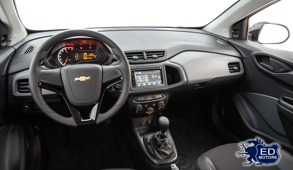 Por fora, as mudanças se concentram basicamente na parte frontal e traseira do veículo. Mudam capô, grade, faróis, lanternas e para-choques. Outra novidade é a opção de acabamento Black, que agrega luz de posição diurna em LED, rodas aro 15 com calotas escurecidas, maçanetas pintadas na mesma cor da carroceria, logo Chevrolet com fundo preto e moldura da grade e retrovisor em preto brilhante.