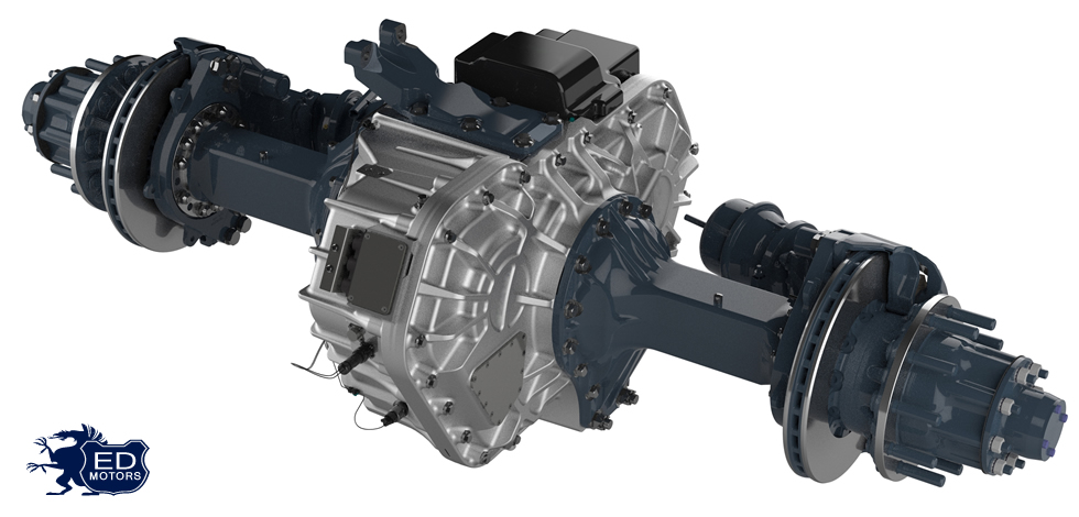 O e-eixo compõe-se de um sistema de transmissão elétrica que vai integrado à estrutura padrão existente nos eixos dos caminhões comerciais. Os eixos da Série AXE possuem motores elétricos, uma transmissão de duas velocidades, trocadores de calor e bombas. O modelo também inclui recursos eletroeletrônicos para uma completa solução de powertrain.