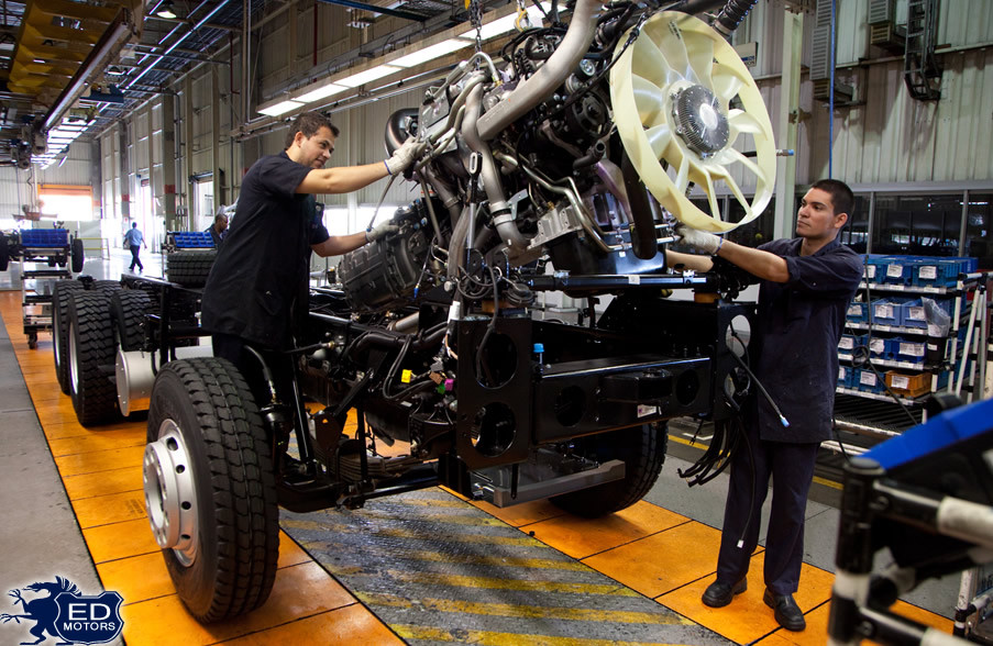 Um novo caminhão ou chassi de ônibus pode sair pronto da linha de montagem a cada três minutos, após percorrer o percurso de produção.