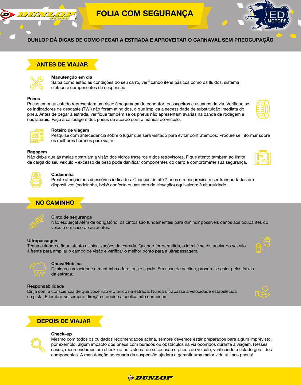 Dunlop dá dicas para pegar a estrada neste Carnaval