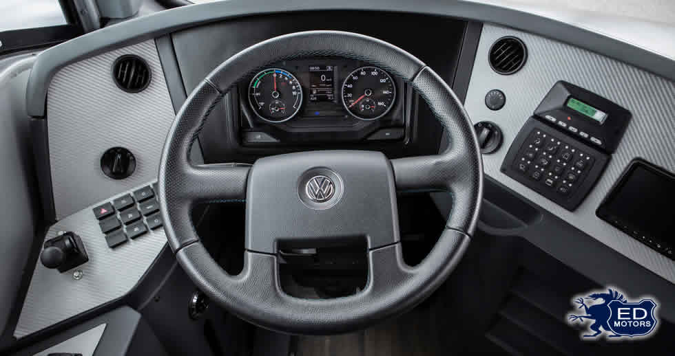 No caminhão elétrico e-Delivery, mais semelhanças: ao entrar no veículo o motorista pode sentir-se em casa ao ver o painel de instrumento, teclas e uma série de itens de cabine comuns ao caminhão e carros VW. É o conforto de carro com robustez de caminhão elétrico e tecnológico.