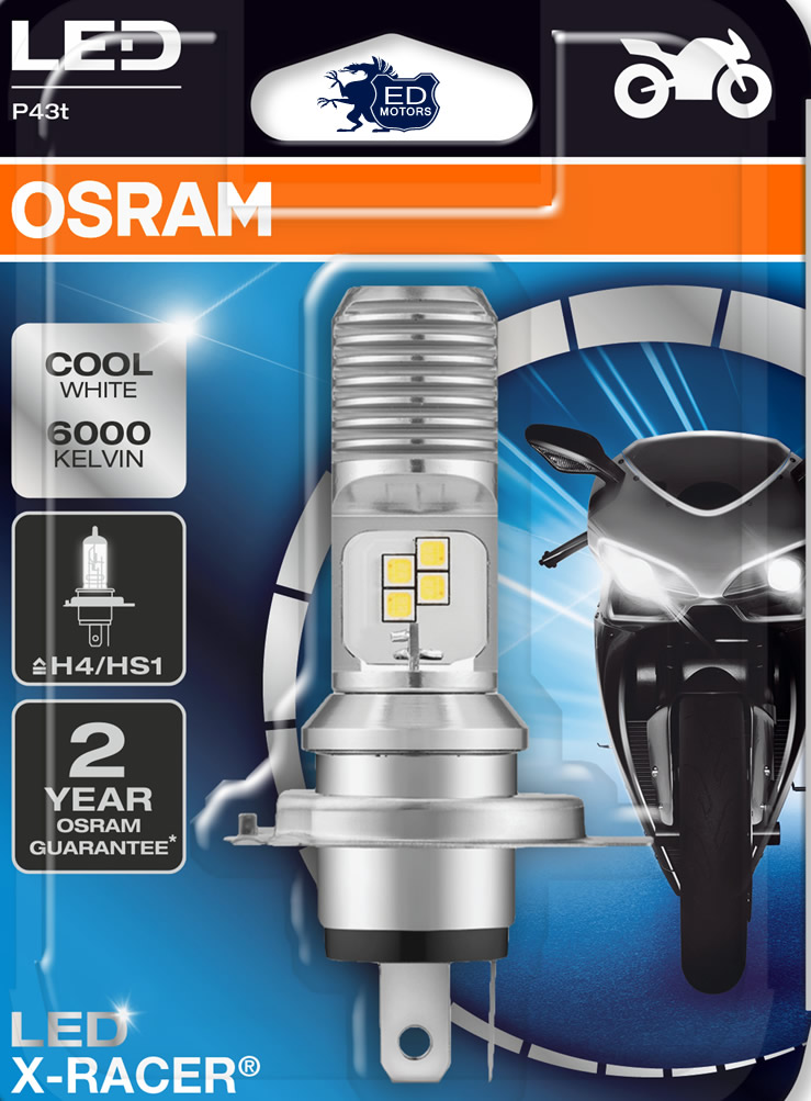 A OSRAM atualiza o conceito de modernidade, qualidade de luz e durabilidade com o lançamento da LED X-Racer® H4 73204CW Moto. O modelo exclusivo na América Latina oferece garantia de 2 anos e apresenta uma solução mais completa para a atualização do farol da moto. Até porque uma das características principais do produto é um eficiente e robusto sistema de dissipação de calor, que evita o aquecimento, principalmente quando comparado com outros modelos concorrentes no mercado. A tecnologia é um diferencial porque não permite um sobreaquecendo dos componentes eletrônicos e do próprio LED, e assim, evita a queima prematura da lâmpada.