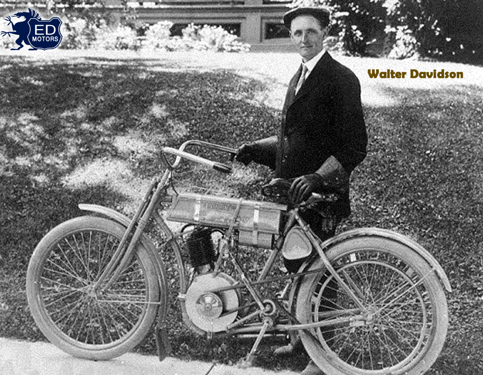 Walter Davidson, filho de William C. Davidson e sua esposa Margaret, nasceu em 30 de setembro de 1876 em Milwaukee, Wisconsin. Em sua juventude, Walter corria de bicicleta e frequentemente fazia seus reparos e manutenção na cozinha da família. Em sua adolescência, tornou-se um talentoso eletricista autodidata e sabia fazer suas próprias baterias. Acredita-se que seu primeiro trabalho remunerado foi para uma empresa de serviços elétricos.