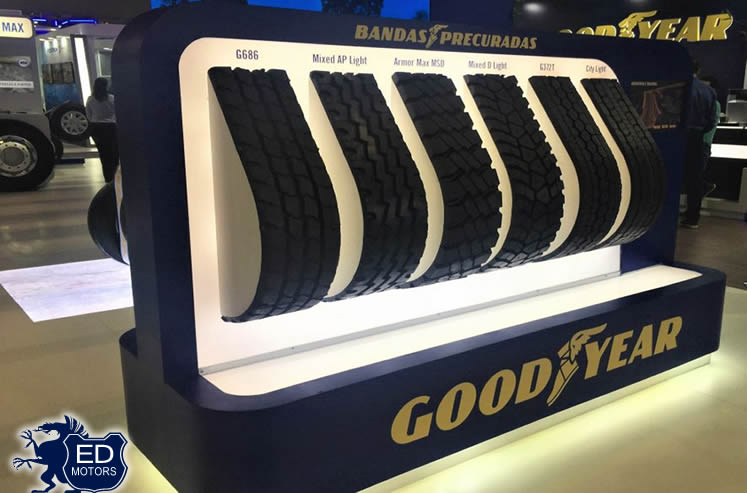 No caso da Goodyear, todos os modelos de pneus para caminhões saem de fábrica com sua estrutura projetada e dimensionada para receber várias recapagens. Os modelos Goodyear da família Max Series, por exemplo, usam novas tecnologias de construção da carcaça, contam com quatro cintas de aço que proporcionam durabilidade e robustez. Um bom exemplo são os pneus da família Max Series, que tem sete anos de garantia na vida total do pneu, independentemente do número de recapagens (quando recapados com produtos Goodyear).