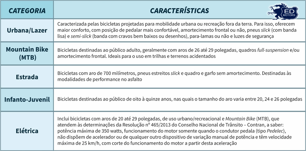 No acumulado do ano, a categoria mais produzida foi a MTB, com 177.181 unidades e 57% de participação. A Urbana/Lazer ficou em segundo lugar (104.783 unidades e 33,7% de participação). Na sequência, vieram Infantojuvenil (20.388 unidades e 6,6% de participação), Estrada (5.506 unidades e 1,8% de participação) e Elétrica (2.919 unidades e 0,9% de participação).