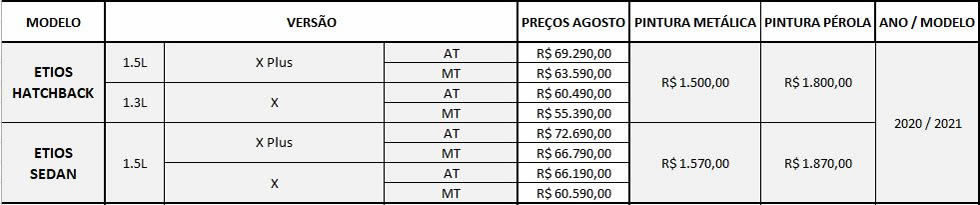 A linha Etios 2021 vem equipada com os já conhecidos motores de 1,3L e 1,5L, ambos 16V Flexfuel, produzidos na planta de motores da Toyota, localizada em Porto Feliz, SP, que recentemente completou quatro anos.