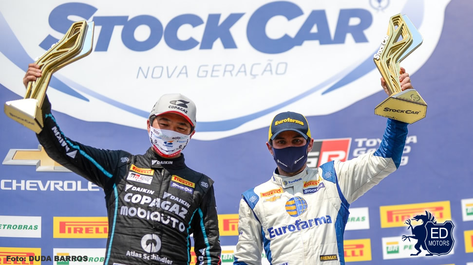 “Só tenho a agradecer. A máscara tá tampando o tamanho do meu sorriso pela primeira vitória. O time mandou muito bem na estratégia, estavamos no lugar certo e na hora certa. Demorou seis anos mas valeu a pena. Faz parte do processo, estou aprendendo e agora que ganhei uma vou querer ganhar mais. Ainda mais na corrida 1, sem grid invertido, não podia ser mais especial!”, disse Rafael Suzuki.