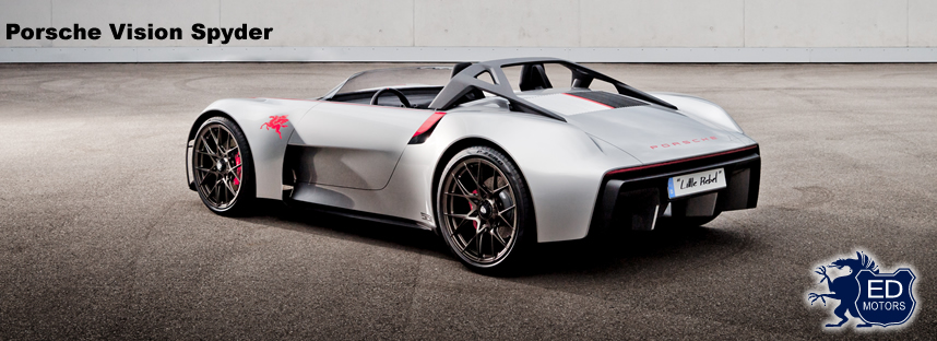 Com seu cockpit purista e espartano, as características grades do radiador sobre o motor central, elementos gráficos vermelhos e as barbatanas estilizadas na traseira, o compacto Porsche Vision Spyder (2019; modelo estático 1:1) faz lembrar claramente o Porsche 550-1500 RS Spyder de 1954. Ao mesmo tempo, esse estudo teve a intenção de desenvolver a identidade de design da Porsche e disponibilizar um conjunto de ideias para futuros detalhes como, por exemplo, o ultramoderno santantônio.