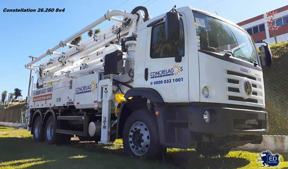 A Concrelagos acaba de renovar a sua frota e escolheu o Constellation 26.260 8×4. De acordo com o engenheiro responsável pela frota da empresa, Adevaldo Junior, os 35 caminhões começaram a ser introduzidos na operação diária e os resultados positivos já podem ser vistos.