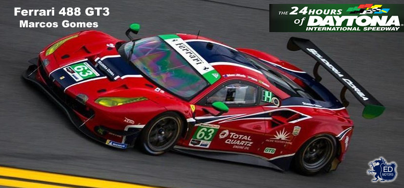 Depois de ficar fora da corrida que classificou o Ferrari 488 GT3 da sua equipe Corsa na 8ª posição do grid de largada da “24 Horas de Daytona”, na categoria GTD, no último final de semana, o piloto brasileiro Marcos Gomes participou, ontem (quinta-feira, 27/01), do primeiro dia de treinos para a tradicional corrida de longa duração norte-americana, prevista para começar neste sábado, às 17h40 (horário de Brasília).