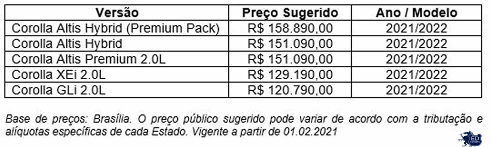 A partir de 1º de fevereiro de 2021, a linha Corolla 2022 chega à rede de concessionárias Toyota de todo o País. Confira abaixo o que muda para cada versão: