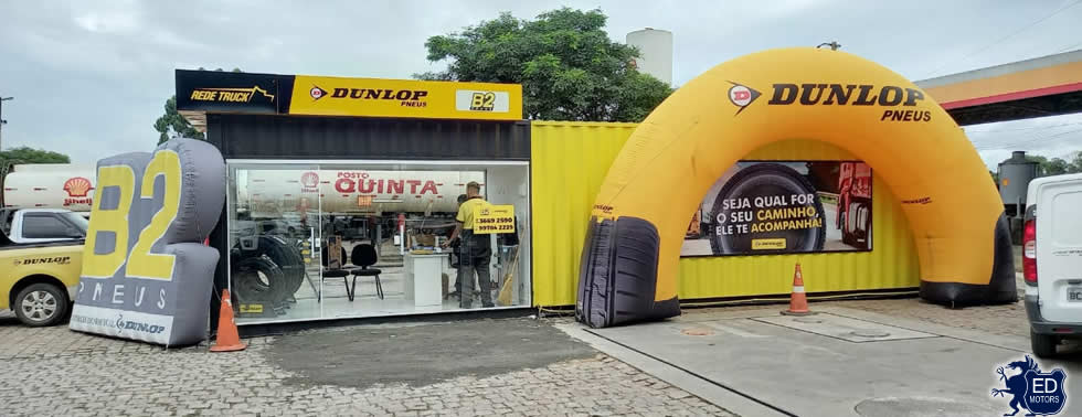 Após a inauguração dos dois primeiros containers para vendas de pneus de veículos pesados no ano passado, a Dunlop ampliou a rede de endereços em parceria com os distribuidores locais e agora tem mais 19 novos pontos de comercialização pelas rodovias do Brasil a fora.