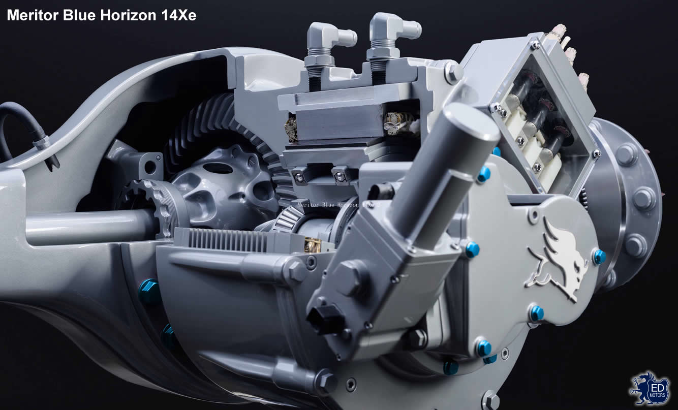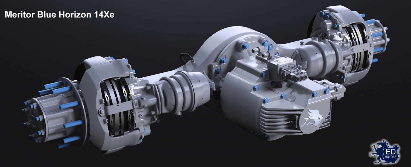 O trem de força da Meritor, Blue Horizon 14Xe possui uma arquitetura modular e foi desenhado para equipar caminhões médios e pesados a partir de 8ton PBT. O 14Xe está sendo desenvolvido para ser utilizado em múltiplas configurações e aplicações e é montado em uma carcaça convencional que facilita a integração com o veículo. Como parte integrante da arquitetura modular, o 14Xe oferece três opções de potência contínua: 150, 180 e 200kW. Conta ainda com uma larga faixa de reduções, incluindo a opção de utilizar reduções nas extremidades das rodas para aumento da capacidade de torque.