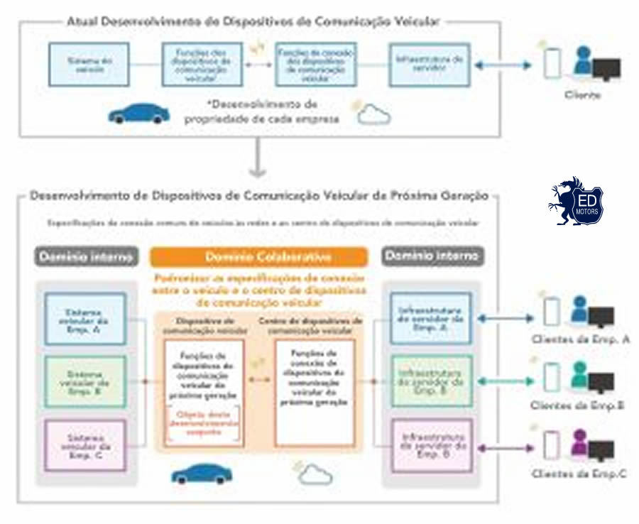 Em veículos CASE (acrônimo em inglês para Conectado, Autônomo, Compartilhado e Eletrificado), considerado um campo que está trazendo grandes transformações para o setor automotivo, rápidos avanços estão sendo feitos em relação aos aspectos de comunicação e dados de tecnologia e negócios conectados, incluindo serviços em nuvem, IoT, big data e IA. Fabricantes de automóveis de passeio estão trabalhando independentemente em dispositivos de comunicação de veículos, e inclusive nos casos em que os mesmos serviços conectados são fornecidos, como funções de operação remota, cada empresa está adotando uma abordagem diferente ao prosseguir com o desenvolvimento e implementar os recursos relevantes.