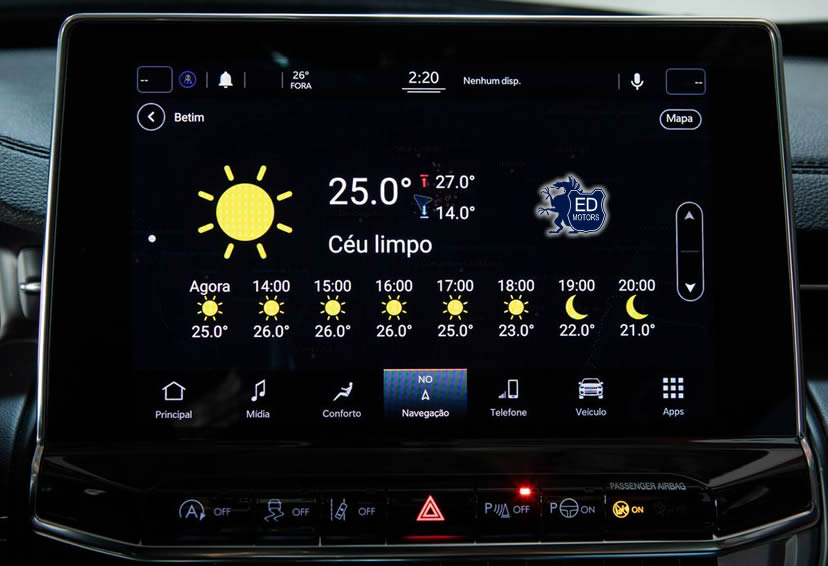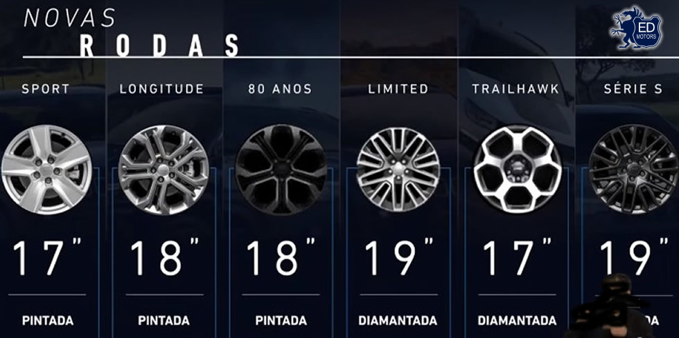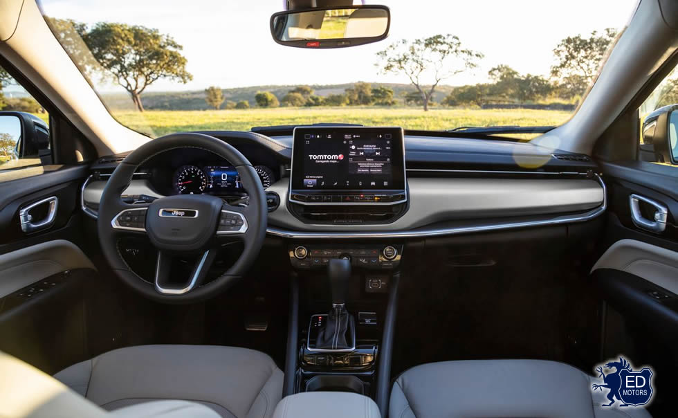 O SUV também conta com um novo quadro de instrumentos com 10,25” para as versões Limited, Trailhawk e Série S (existem ainda a de 3,5” na versão Sport e 7″ na Longitude e 80 Anos). Totalmente digital, ele traz maior tela de display de LCD; nova tecla HOME no comando volante, que facilita a navegação do usuário; capacidade de renderização de imagem 3D do veículo; possibilidade de alteração de tema em modo digital ou analógico e personalização de menus favoritos com até cinco opções diferentes.