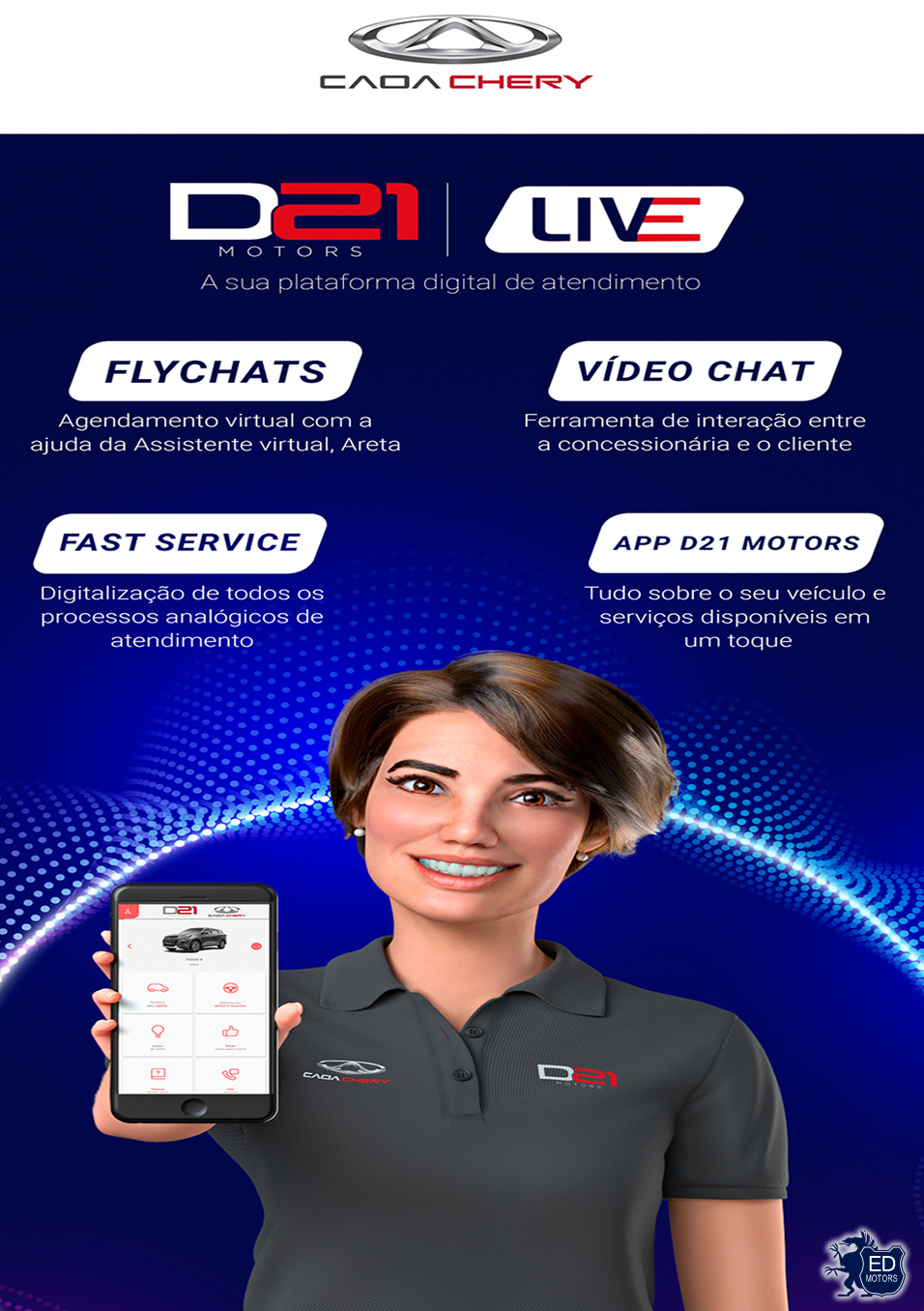 Atualmente, o CAOA LIVE está em fase de implementação na D21 Motors, rede de concessionárias que representa a CAOA CHERY, na CAOA Hyundai, na CAOA HMB e na CAOA Subaru. O Cliente poderá consultar a ARETA no Pós-venda e em Vendas.