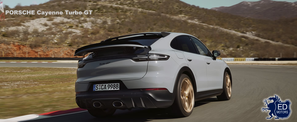 A Porsche completa a linha de modelos Cayenne com um herói esportivo: consistentemente configurado para desempenho e dirigibilidade máximos, o novo Cayenne Turbo GT combina uma dinâmica de direção excepcional com um alto grau de usabilidade no dia a dia. Seu motor V8 biturbo de 4,0 litros e 471 kW (640 CV) serve de base para características excepcionais de dirigibilidade. Com 67 kW (90 CV) a mais que o Cayenne Turbo Coupé e torque máximo de 850 Nm (um aumento de 80 Nm), a aceleração de 0-100 km/h foi reduzida para 3,3 segundos (0,6 s menos) e a velocidade máxima agora é de 300 km/h (um aumento de 14 km/h). Com linhas ainda mais desportivas e disponível exclusivamente como Coupé de quatro lugares, o Cayenne Turbo GT vem com todos os sistemas de chassi disponíveis de série e pneus de alta performance desenvolvidos especialmente para este modelo. A transmissão e o chassi também têm uma configuração única, especificamente definida para o Cayenne Turbo GT. O resultado é um conceito geral harmonioso com excelente capacidade para pistas de corrida. Isso foi comprovado pelo piloto de testes da Porsche, Lars Kern, que rodou os 20,832 km de Nürburgring Nordschleife com o Cayenne Turbo GT em um tempo de 7:38,9 minutos, estabelecendo um novo recorde oficial para SUVs.