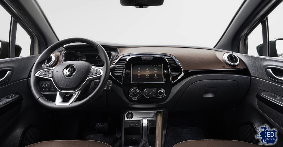 O interior foi completamente renovado. Com materiais suaves ao toque, o Captur está num novo patamar de percepção de qualidade. A versão topo de linha ganhou ainda a opção bíton no interior com a combinação da cor marrom Castanyera, dando um toque a mais de requinte ao veículo. O acabamento interno mistura detalhes em black piano com cromados, como ao redor do sistema multimídia e das saídas de ar.