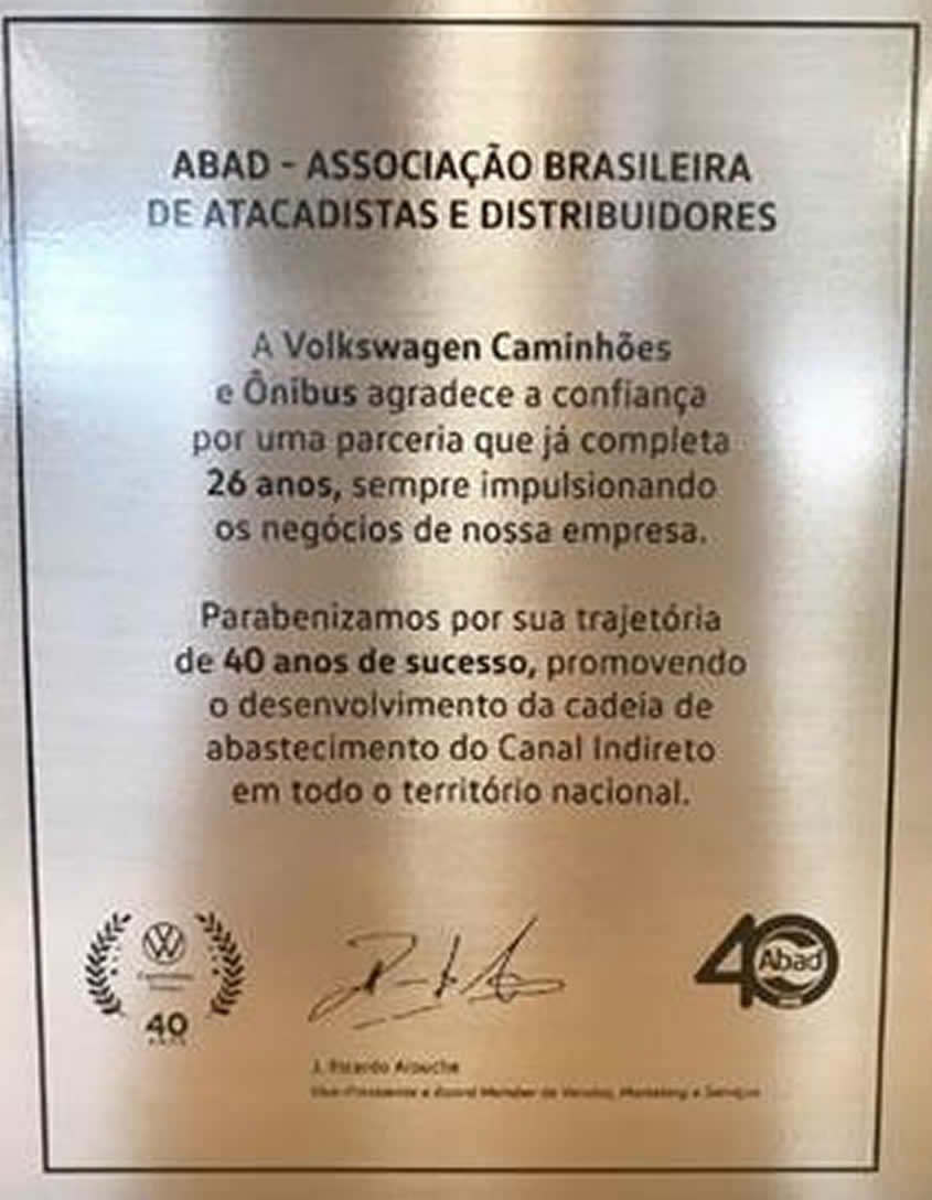 “É com grande alegria que comemoramos os 26 anos de parceria com a ABAD. Foram anos de muitos desenvolvimentos e debates sobre o setor de distribuição no Brasil. O fruto disso é mais de 25 mil caminhões Volkswagen vendidos em condições especiais priorizando os pedidos da ABAD. Que possamos fortalecer cada vez mais esse relacionamento construindo um futuro cada vez melhor para o setor”, comenta Ricardo.