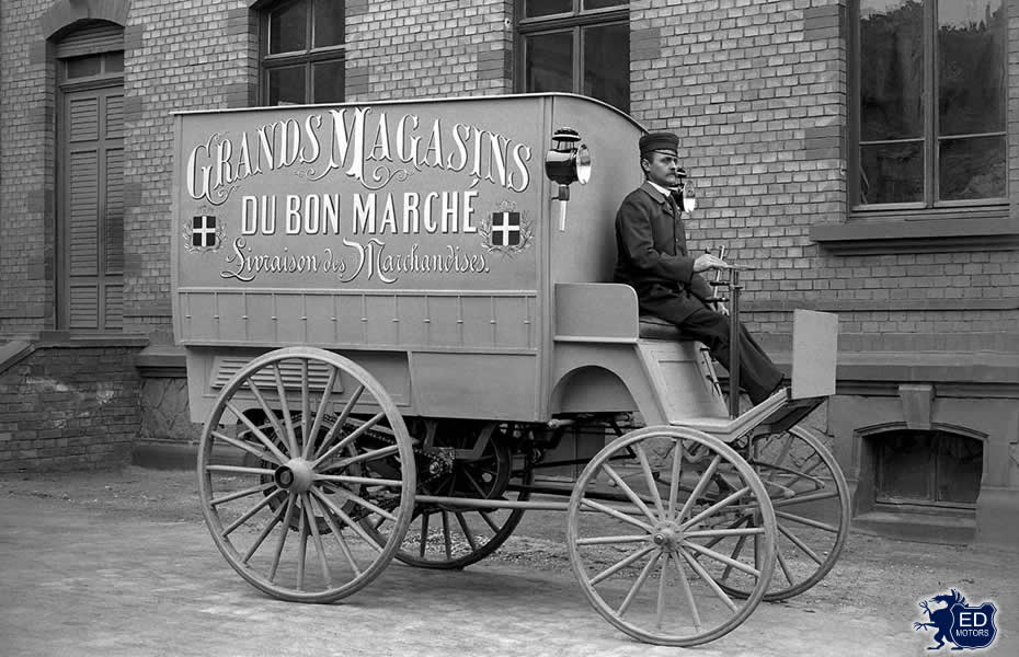 O “Benz delivery vehicle” foi mencionado pela primeira vez em um catálogo da Benz & Cie, em maio de 1896. O novo conceito de um veículo motorizado patenteado de design superior para a entrega de mercadorias, com motor de 5 cv, despertou imediatamente um interesse considerável. No entanto, não foram os clientes da Alemanha os mais interessados neste design pioneiro. Em vez disso, o primeiro modelo documentado foi entregue à loja de departamentos parisiense “Du Bon Marché”. Até a página do catálogo da van de entrega é ilustrada com uma representação desse veículo, juntamente com a publicidade do estabelecimento.