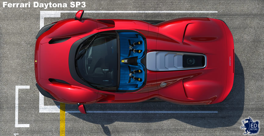 O design da Ferrari Daytona SP3, edição limitada que se junta à série ‘Icona’, traz uma composição harmoniosa de contrastes, superfícies e voluptuosas com linhas mais nítidas que revelaram a crescente importância da aerodinâmica no design de pilotos dos anos 60 e 70, como o 330 P4, 350 Can-Am e 512 S. A escolha ousada de uma carroceria ‘Targa’ com capota rígida removível também foi inspirada no mundo dos protótipos esportivos. Com isso, a Ferrari Daytona SP3 não só proporciona prazer de condução emocionante, mas, ao mesmo tempo, garante excepcional desempenho.